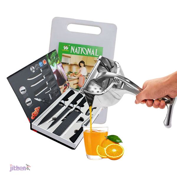 Jitben 4 In 1 Premium Kitchen Combo ( 1 Chopping Board, 1 Hand Press Juicer, 6pcs Kitchen Knife Set, 1 Hand Blender )
