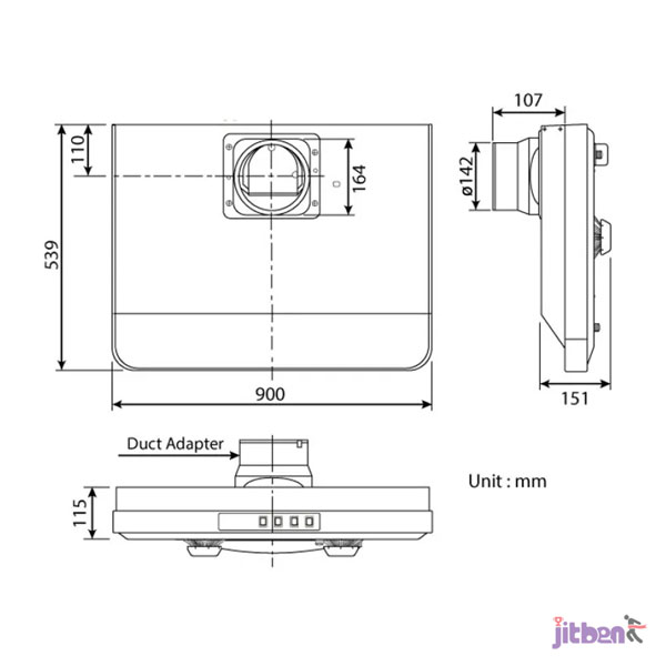 - Twin motor design, Rocker switch, Exhaust type kitchen chimney