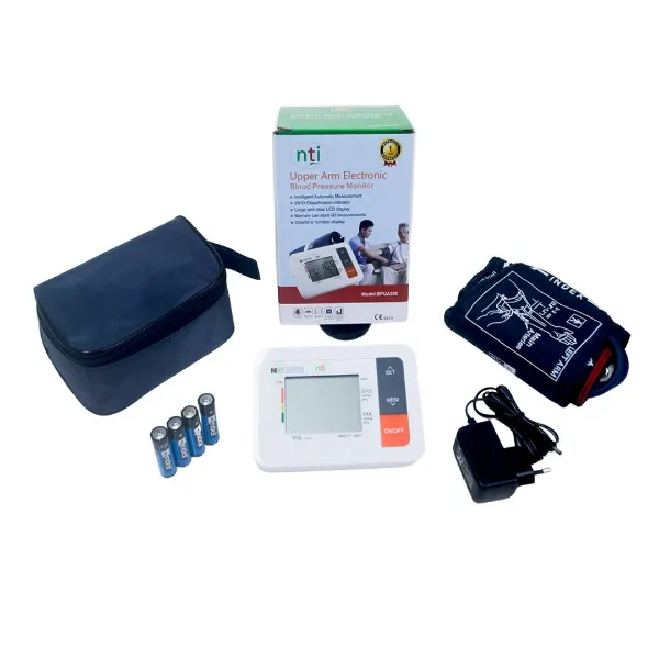 NTI’s digital blood pressure monitor (BPUA200) is a Japanese integrated technology. This NTI digital blood pressure monitor can be charged in two ways. The first is powered by X AA batteries, and the second by an AC power cord. This digital blood pressure monitor comes with clear light buttons and a battery.