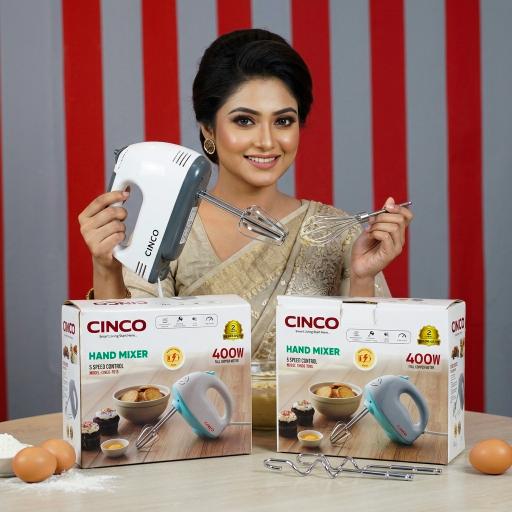 The Cinco 400W Electric Hand Mixer (Model CINCO-7015) is designed to make baking and kitchen preparation faster and easier. Powered by a durable full copper motor, this hand mixer delivers strong and stable performance for mixing, whisking, and kneading.