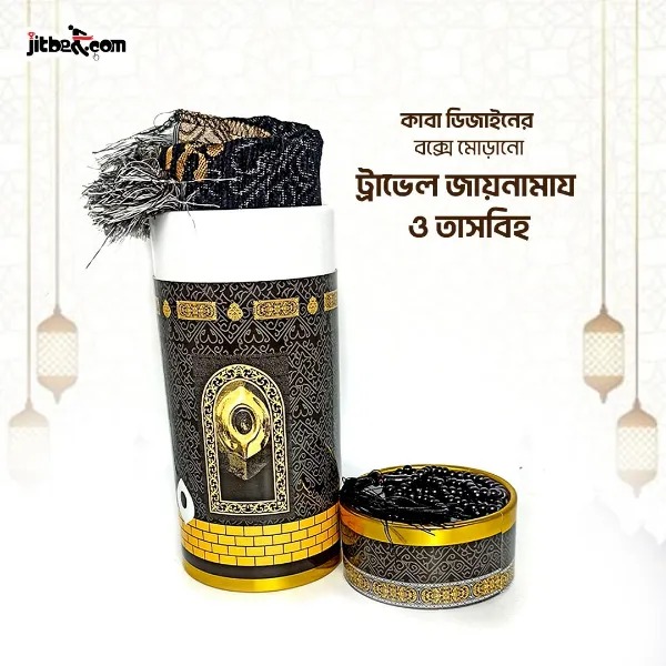 Hadia Islamic Gift Box | Jaynamaz, Attor, Tasbih & Kaaba Shaped Square Box | Royal Islamic Gift Box