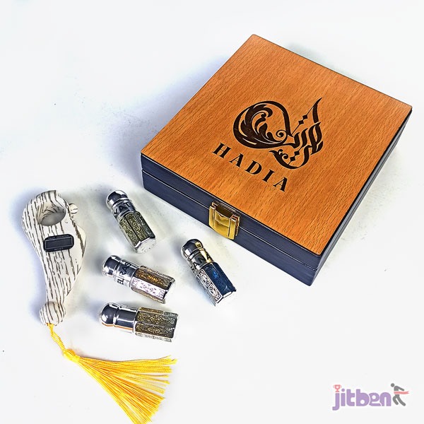Hadia Islamic Gift Set 5 In 1 | 4 Piece Attor, 1 Digital Tasbih | Premium Islamic Gift Box