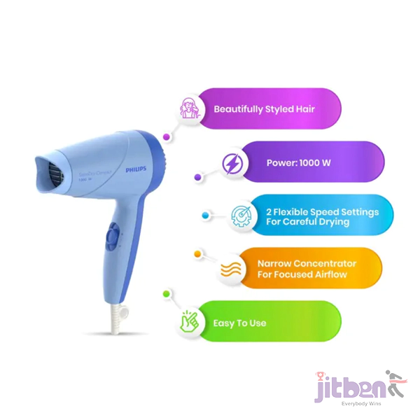 The power to style and dry hair is well-balanced in this Philips Essential hairdryer. Due to its small size, the dryer is convenient to use both at home and on the go. Whenever you go, get the lovely and delicate outcomes you want. This lightweight, portable hair dryer has a clever design that makes it easy to manage.