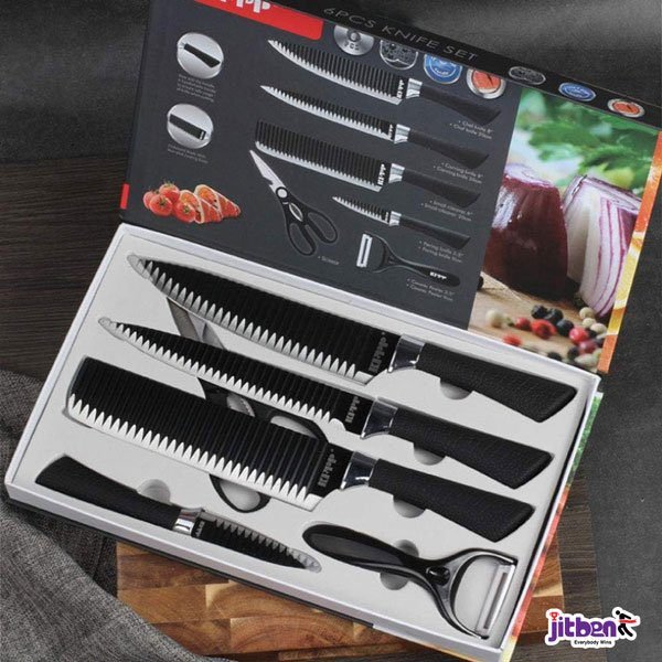 Jitben Qurbani Special 4 In 1 Combo ( 1 Chopping Board, 6 Pcs Kitchen Knife Set, 1 Professional Knife Sharpener, 1 Digital Weight Pocket Scale )