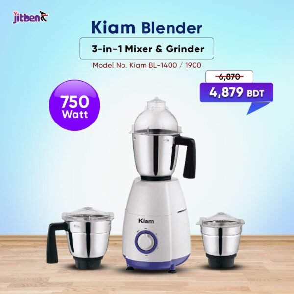 Kiam blenders are quite popular in Bangladesh because of their great quality and longevity. It’s crucial to thoroughly consider the Kiam blender price in Bangladesh before deciding what to buy. To help you choose the best Kiam blender and mixer grinder model, we’ve thoroughly reviewed every model that is currently on the market. One multifunctional Kiam blender machine that is easy to operate is the BL-1400. It can grind wet rice, coffee, spices, and cut meat in addition to making juice and lassi and having a liquid, dry, and chutney jar.  When using the BL-1400 mixer grinder, you can almost achieve anything. Furthermore, cleaning the blender is a breeze because of its elegant exterior design.