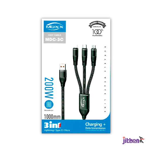 MOXX 3IN1 DATA TRANSFER CABLE (MDC-3C) | USB-A TO MICRO, IPHONE, TYPE-C | 200 WATT