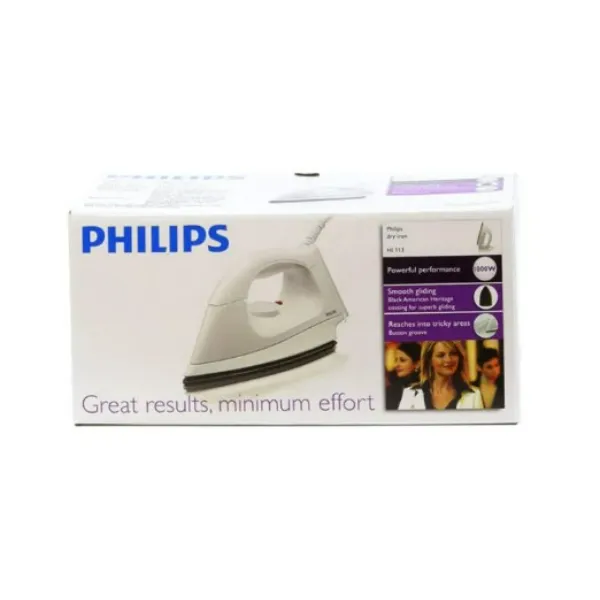 Ironing clothes has never been easier without the Philips Dry Iron HI-113. Its 1000 Watt power and American Heritage Black coating make it fast and smooth, speeding up your ironing time.