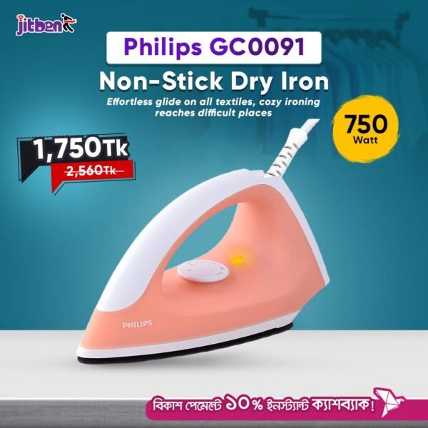This iron provides dependability and peace of mind because to its sturdy construction and sophisticated functioning. The Philips GC0091 750W Nonstick Dry Iron is a useful addition to any family, providing crisp, wrinkle-free clothes with ease. It will improve your ironing experience. Also –