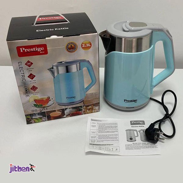 Introducing the Prestige Electric Kettle OG-2388, a reliable and versatile kitchen essential. With a 2.3-liter capacity, this Prestige electric kettle is ideal for quickly boiling water for tea, coffee, or cooking.