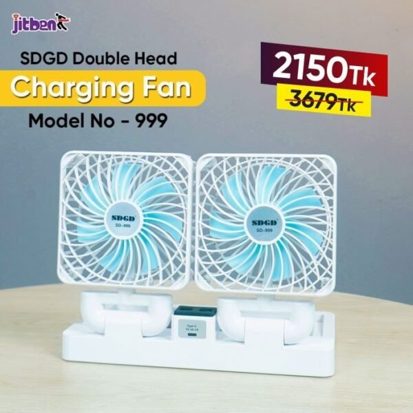 Home Home Appliances Fan and Air Cooler Rechargeable Fans Mini Rechargeable Fans SDGD Double Head Charging Fan | Model No – 999 ( Solar Panel Attached)
