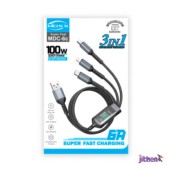 - 1 Pcs MOXX Fast Data 3in1 Cable | 100W Fast Speed | USB to Type-C, Micro Lighting