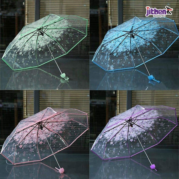 - Product Title: Transparent Ladies Three Folding Sunny and Rainy Umbrellas