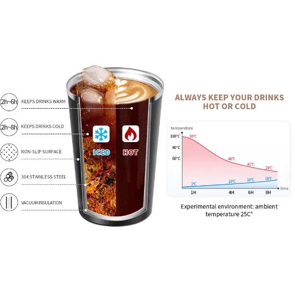 Hot Coffee Travel Mug | 380ml Thermal Stainless Steel Coffee Mugs, Insulated Travel Coffee Mug